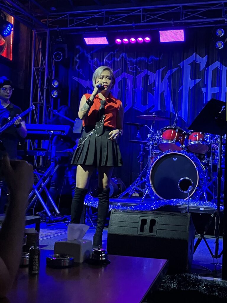 We saw a couple of live bands including one of my favourites at the Rock Factory (earplugs required). Normally it’s Thai women who have western boyfriends, but as these Thai musicians are so cool, the men have western girlfriends, whom Sasipa and I chatted to for a while.