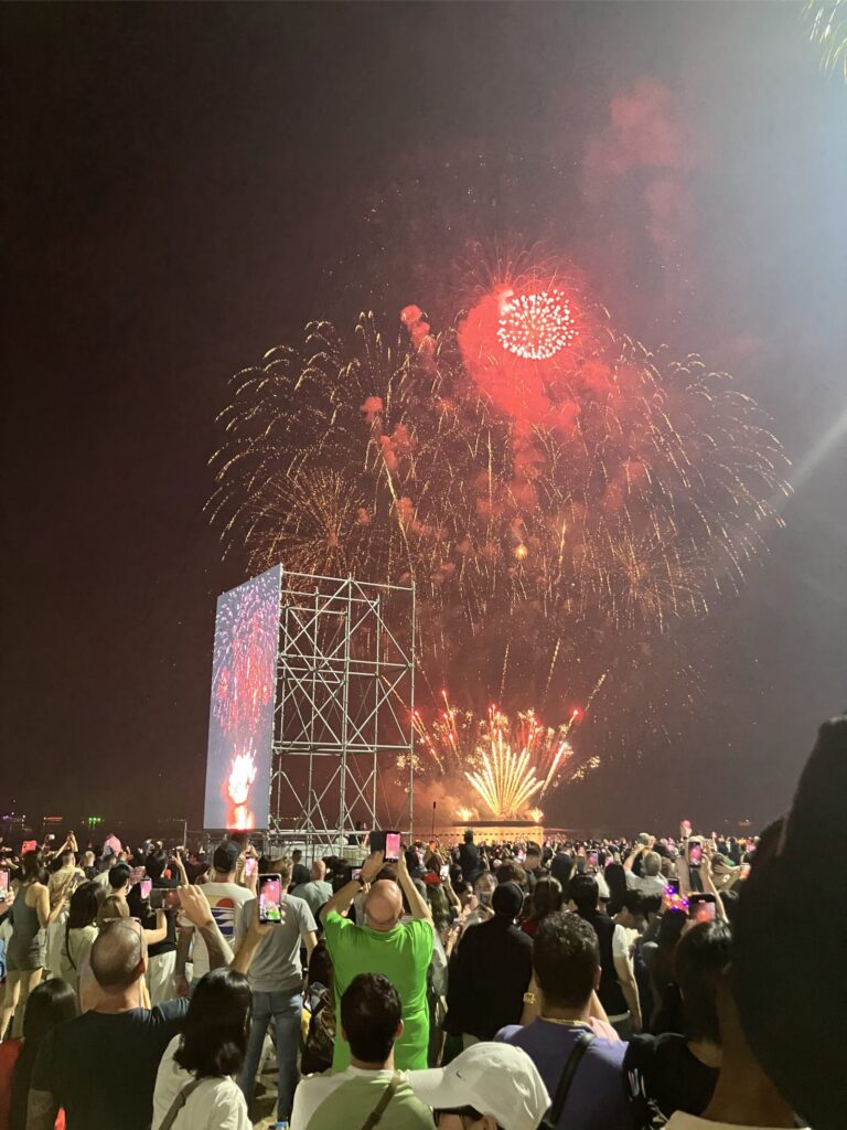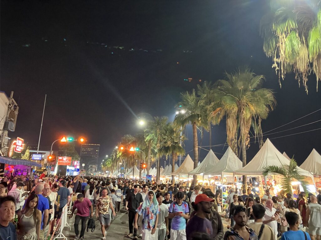 The new years eve celebrations were manic. The beach was jammed packed with people as far as the eye could see in either direction. There was a superb firework display and some drone images in the sky too. A food market that stretched a kilometre or more along the edge of the beach was doing good business and we bought a few snacks as we threaded our way through the crowds.