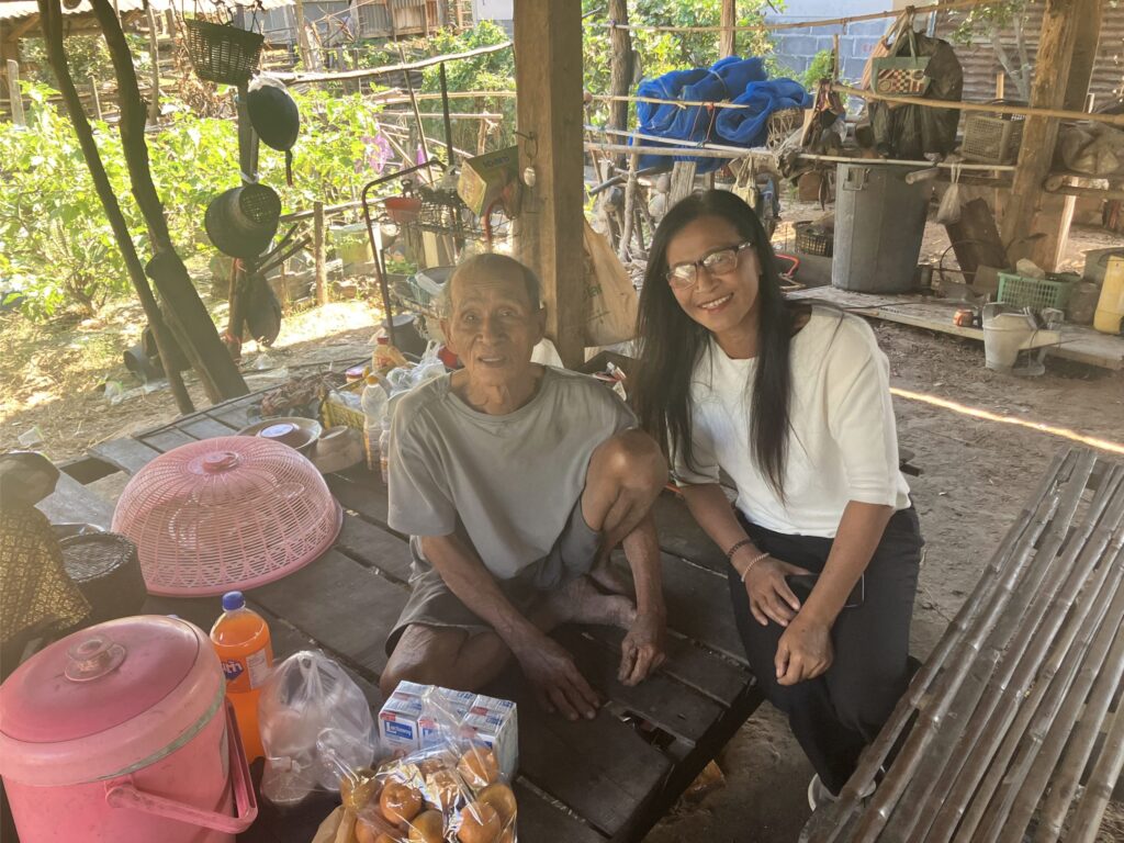 We drove up to see Sasipa’s father today, about 120km away in the direction of Roi Et, as she heard from relatives that he isn’t well. He seemed alright, but a bit forgetful. In fact Sasipa has only seen him twice in 50+ years, prior to this visit as he abandoned them all before she was even born and those two times were by chance. It seems he had quite a hard life and is quite thin and frail now, so Sasipa wanted to make her peace while she still could.