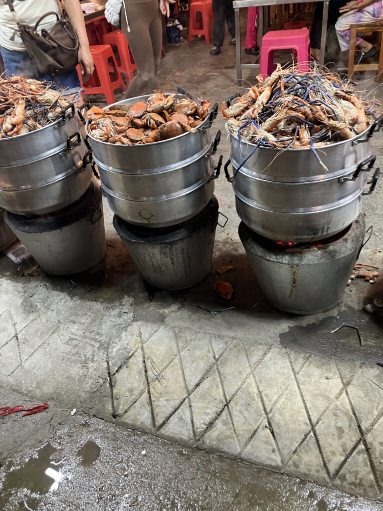 Not far away we find another big market with loads of different food options and we sit down to eat. Some of the stall holders have given up early due to the on and off downpours. Then the power goes out, back on, out, on then off again. This proves too much for our seller, who starts to pack up shop. Luckily we have just about finished and head back to the hotel as we have a very early start.