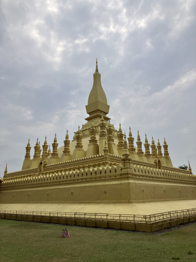 There isn’t really a great deal to see in Vientiane. I’d say its more of an administrative city than one of high culture. There are quite a few temples and we visited a couple. One particularly well known one is called Wat That Luang Tai, you can’t go in, but you can walk around the cloisters outside. It is painted in gold and looks good, but it is a bit run down. There are various aged artifacts and statues in the cloisters, but again not all that interesting. Outside there are a couple of hawkers holding a handful of tiny little cages with small birds inside. You can pay for a cage (which you don’t get to keep) and free them, it’s a complete scam as, of course, the birds will be recaptured later with some seed and re caged for tomorrow. I just know that Sasipa is going to ‘buy’ a cage and free the two trapped birds, but I have to bite my tongue hard not to say too much about it. She is adamant that it is good luck to free them and that they might get away and not be recaptured. I don’t think there is any chance of that and also if no one ‘bought’ a cage then the sellers wouldn’t be in business and all the birds would be free,