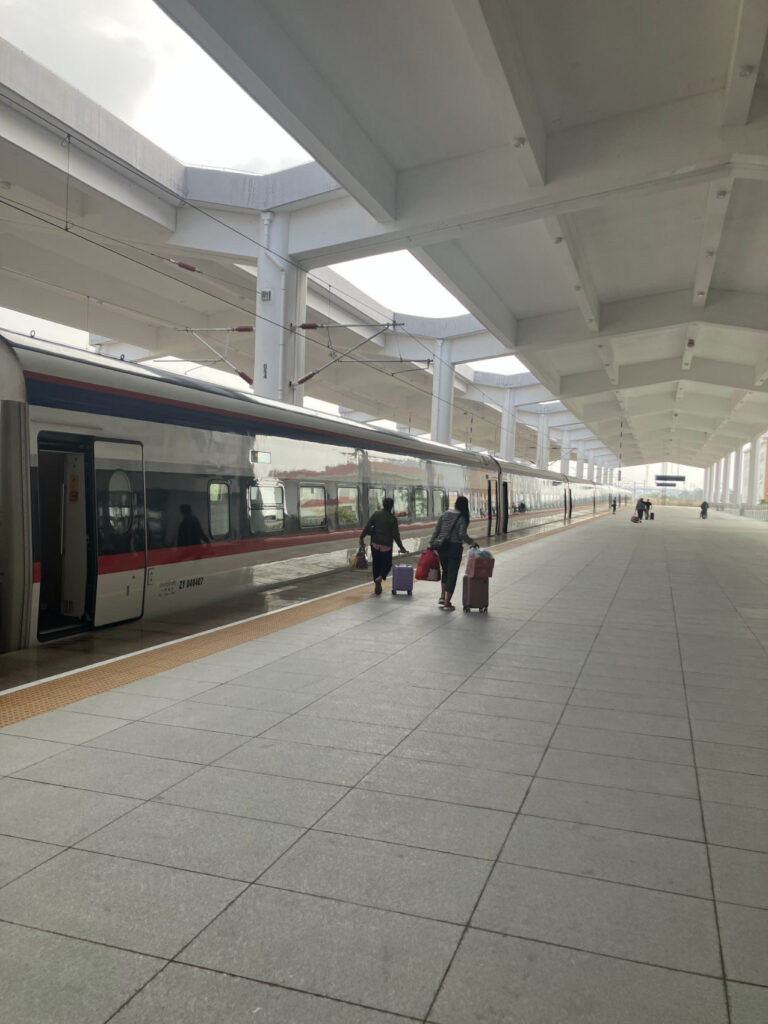 The train itself is very long, around 15 carriages. It is absolutely packed every journey. I had the required app on my phone and was able to book the tickets we needed, but it isn’t easy. The tickets are only released 3 days or so before and sell out almost at once. If you want to take the train there can be no spontaneity. You have to plan ahead. The train station is a nightmare, the outside is a sea of minibuses all lined up, more than a hundred of them. The queue to even get in the train station snakes along the side of the vast building. Getting in is like being at an airport, with security scanners for you and your bags. You then wait inside until they open the gates to the platform. Here half a dozen long queues also form stretching 40m each or more. Quite a lot of people just queue jump. This is what happens when a country with over a billion people can just hop on the train and go on a tour of a neighbouring country. I don’t mean to be critical, but there are just so many of them, the infrastructure can barely cope. You really would have to see it to believe it.