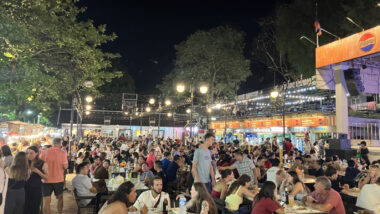 The night market here is huge, there is a central area that is full of food stalls selling many types of cuisine and these surround hundreds of tables and chairs, which are all packed with people eating. Practically everyone eating here appears to be a tourist and personally I find it really noisy and unpleasant. I’d much rather find a little local stall somewhere and eat there, but it’s our first night so we choose something from one of the stalls and tuck in.