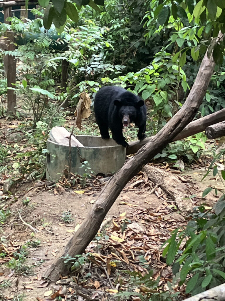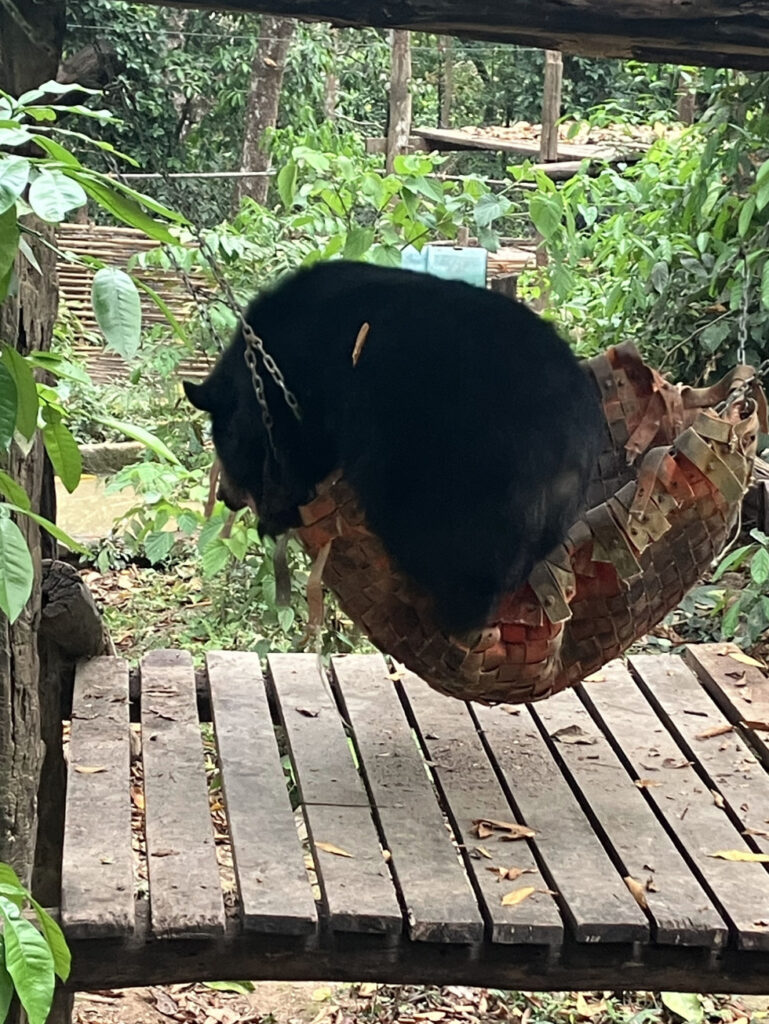 The first thing that you come across is the Tat Kuang Si Bear Rescue Centre. It is a sanctuary for rescued Asiatic black bears (moon bears) and Malayan sun bears that have been rescued from trafficking and poaching. They live mostly in a natural habitat and are really interesting. They were here when I last came, along with some tigers too, although those are now long gone. The size of operation and number of bears is much greater now than then and watching them playing and running around made Sasipa’s day. Pronouncing them very cute she was up for wanting to give them a big hug. Probably unwise, I suggested!