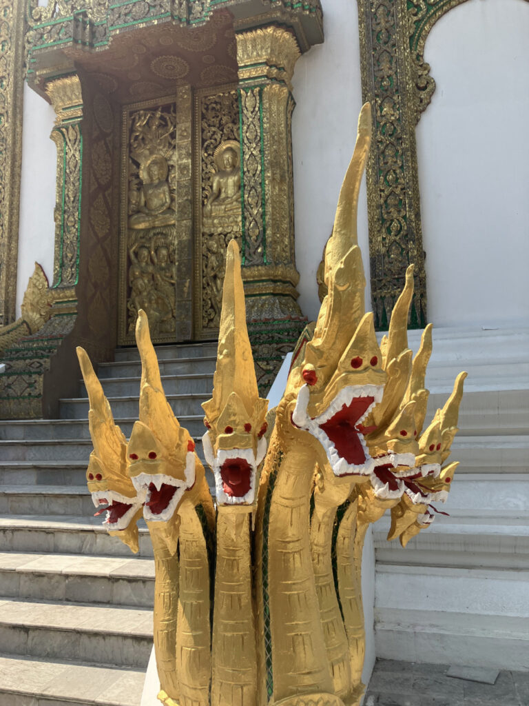 The other temple was much more of a working temple and we had a little audience with a monk who did the usual water on the head from a kind of stick, chanted for a bit and tied something like a friendship bracelet around my wrist, wishing me good luck for health and business.