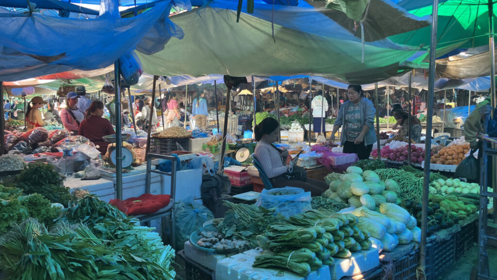 Once over the bridge you feel like you are in a different world. Tourists largely disappear, prices tumble and it feels much more real. Signs in English disappear and you see the local supermarkets, shops and stalls packed with locals. We stopped at a 4×4 vehicle laden with Pomelo’s. The price was only 10,000 LAK (30p) and they peeled it for you too! If you have ever tried to peel a Pomelo, you’ll know that that is a very worthwhile bonus.
