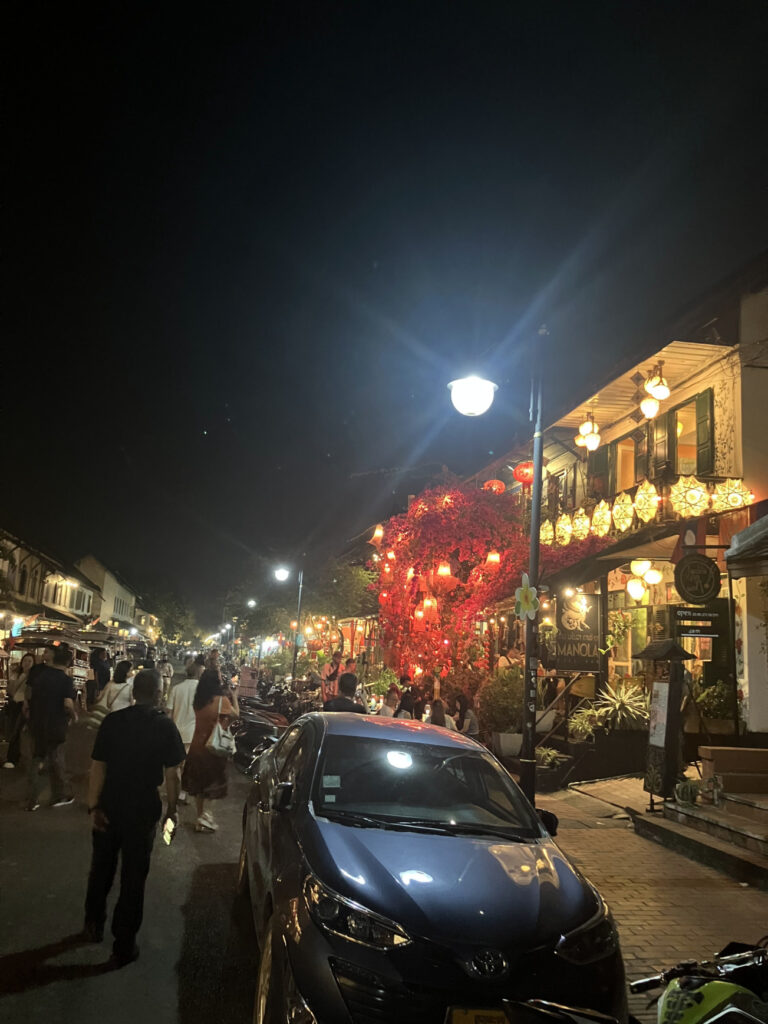 Getting off at Luang Prabang was yet more chaos. Again there were well over 100 minibuses jamming the roads all around. Sasipa and I found a marginally quieter corner and I booked a taxi with my Loca app. Luckily he was already here in a car park, but despite photo’s and messages back and forth it took nearly 20 minutes to find him in the vast scrum of people.