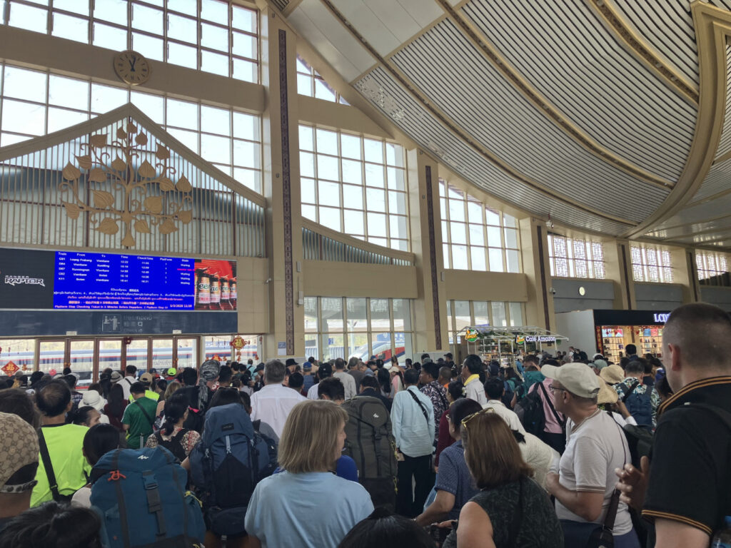 My tickets still say Bangkok to Vientiane on them, so the first thing once at the train station is to check with the ticket office. It’s no problem, he changes them and we sit down to wait.