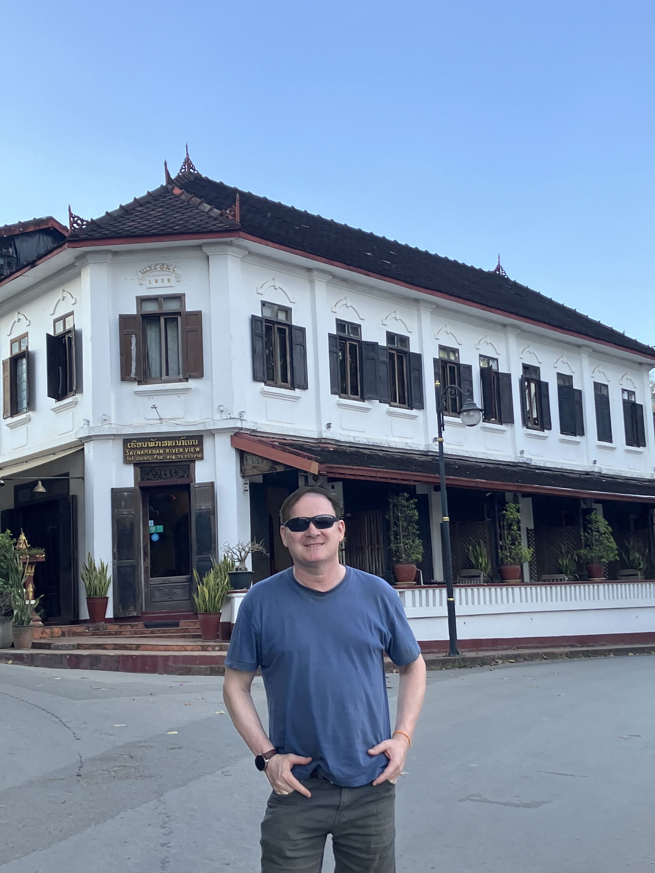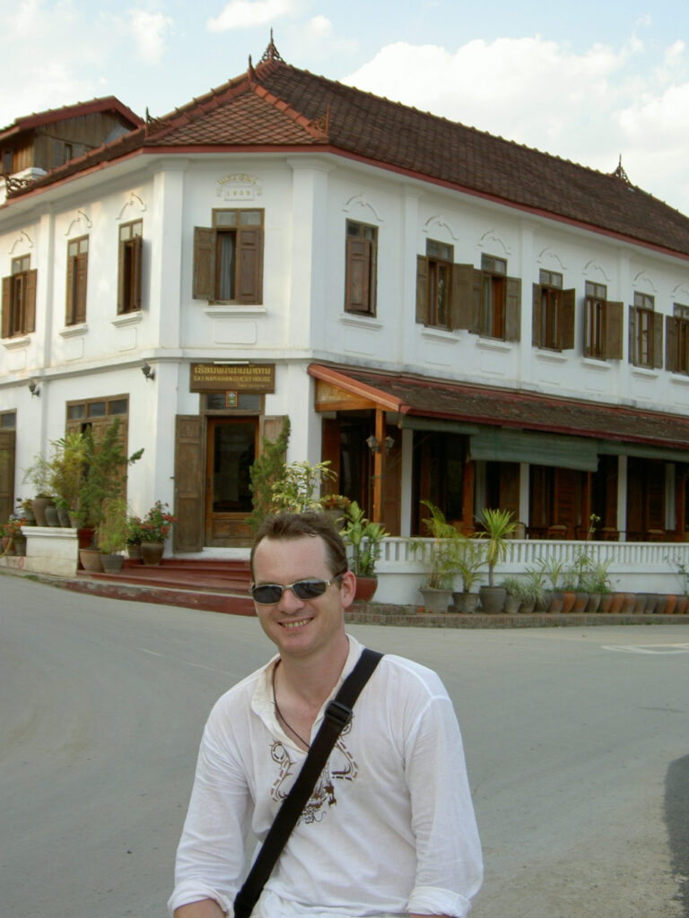 The colonial feel of the buildings in Luang Prabang is still very strong and although busier it looks a lot like it was when I was last here. I even came across my previous guest house and now have a then and a now photo of me standing in front of it!